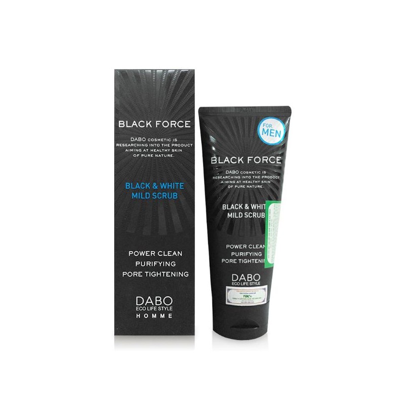 DABO Black Force - For Men luxury cleanser for men, with a unique formula combining activated carbon, mineral mud, grain essence, fruit and green tea ... to help remove greasiness effectively, prevent acne for Men, while also helping to keep the skin shiny, firm and masculine.
